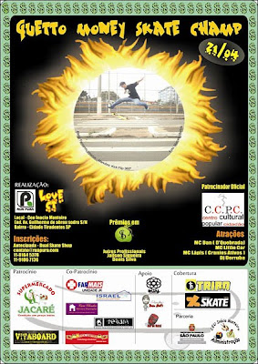 pista Acontece no dia 21 de abril, feriado de Tiradentes o evento Guetto Money Skate Champ, mais um evento de alto nível na zona leste paulistana, Cidade Tiradentes Modalidade street categoria OPEN Inscrições R$10,00 + 1KG de alimento não perecível